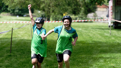 L'arrivée de la course fille VTT de la course Inter-EPIDE se fait dans une ambiance pleine d'émotion, marquée par la victoire de la sœur de Louis et de Juliette, une amie très proche de la famille.